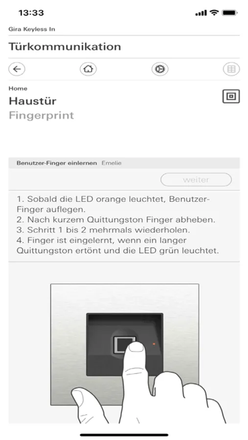 You can work through the start-up wizard and manage your Gira System 106 Keyless In products using the app.