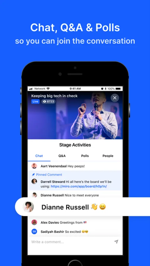 Attend live events wherever you go. Watch sessions and engage with other attendees and speakers — whether you’re joining virtually, in person, or both.