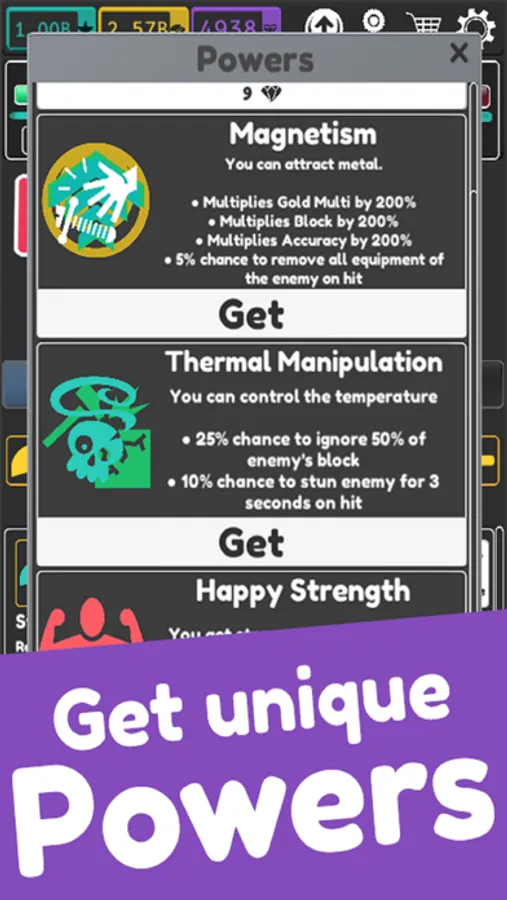 Idle Superpowers is a roguelike idle rpg where you are a superhero who can get multiple superpowers that are combinable and synergize with each other!
