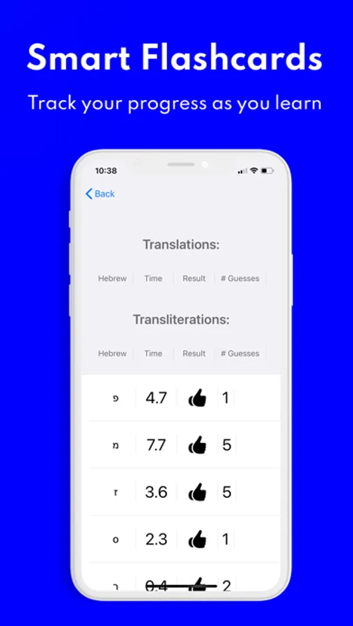 “Smart Hebrew Flashcards” are “Smart” because the Progress screen shows exactly how students are doing on particular words, and perhaps more importantly, how much time they spend on a particular word. Teachers need to know that to plan what to focus on.