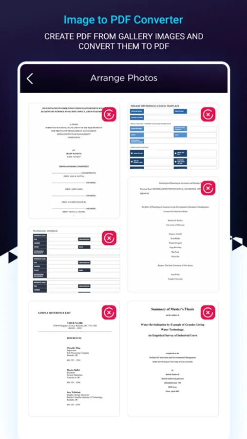 Take photos of documents with your camera then convert them to pdf. Choose from pre-defined Photo Grid layouts with photo text. Create your own custom Photo Grid layout. Convert jpg to pdf to easily print one or more photos on a page.