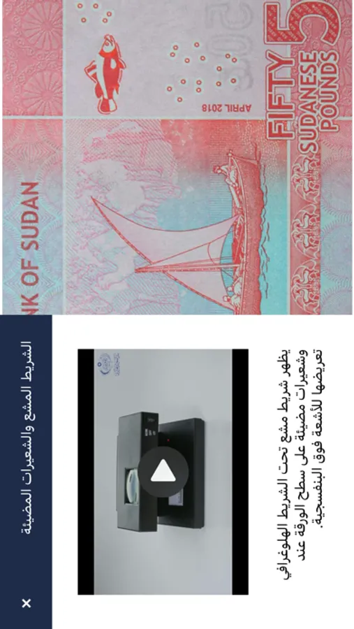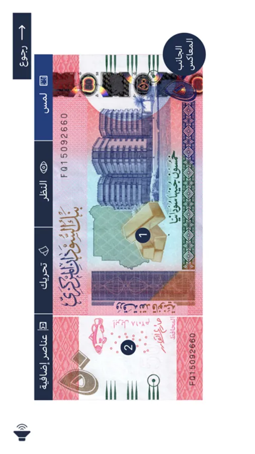 The (Sudanese coins) app is an interactive tool to display the specifications of the current Sudanese banknotes, and enables the user to identify the security features of the banknotes, including the new series that issued in and after the year 2019,