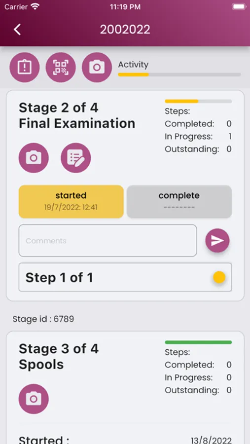View and update tracker stages, add comments, take photos and reassign QR codes. Raise, answer and sign off technical queries