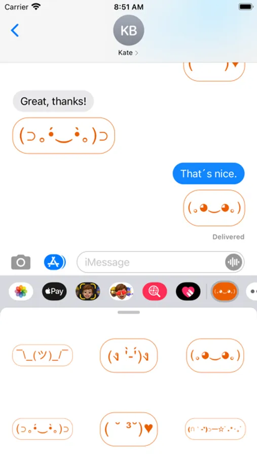 Are you of the nerdy type? Do you love Japan? Do you love ASCII art? Then these classic kaomiji emoji based iMessage Stickers are for you! Hand crafted with style and "Made in Germany".