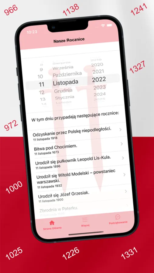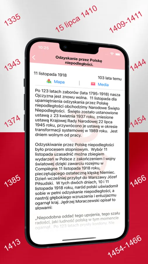 Aplikacja zawiera ponad 3500 wpisów dotyczących ludzi i wydarzeń z historii Polski od początków państwa polskiego do współczesności.