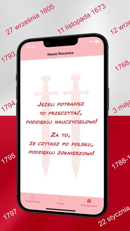 Celem tej aplikacji jest wzbudzenie zainteresowania naszą historią. Mamy piękną historię i powinniśmy ją znać i być z niej dumni. Wydarzenia tu opisane nie są naukowym opracowaniem i mogą zawierać pewne nieścisłości. Aplikacja ta powinna być używana jako punkt startowy dla poszerzenia naszej wiedzy o historii naszej Ojczyzny.
