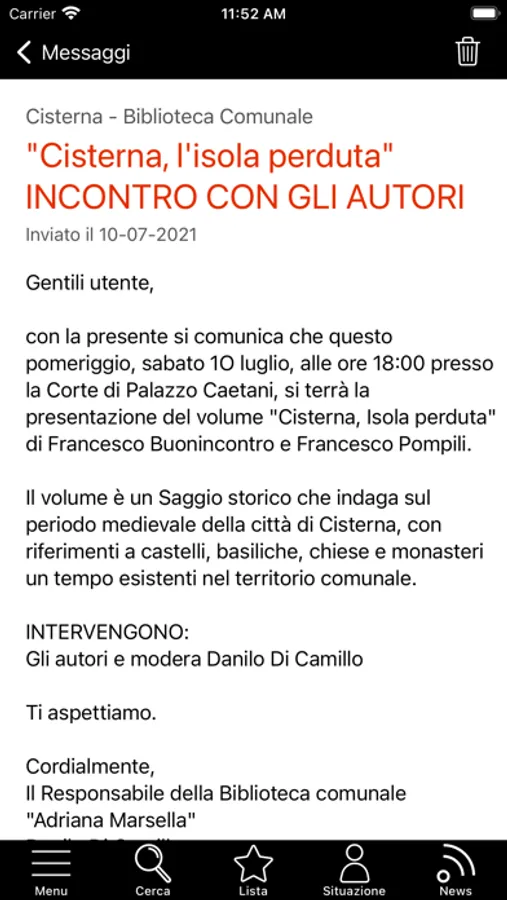 BiblioCisterna è l’App della Biblioteca Comunale di Cisterna di Latina. Pensata appositamente per te, consente di consultare il catalogo della biblioteca comodamente da smartphone e tablet. Basta un click!