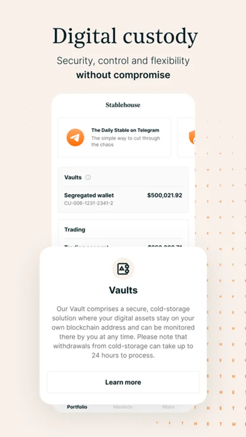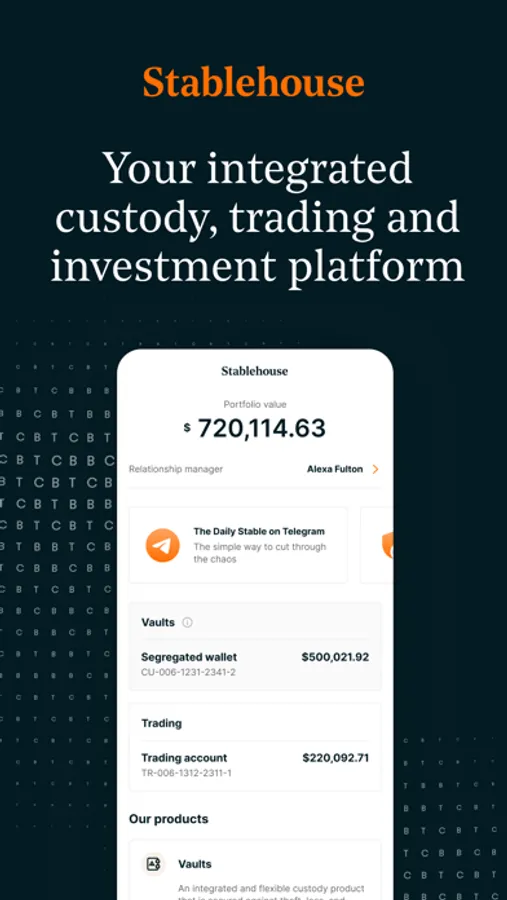 Stablehouse provides institutional access to digital assets, available on mobile as well.