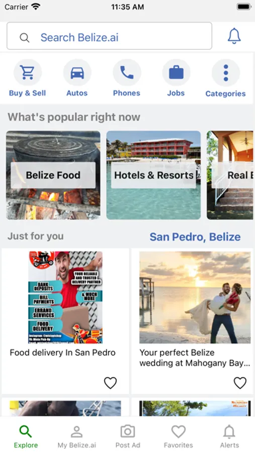 From car dealers to restaurants, online stores to salons, find more customers by listing items for sale / rent / trade or list the services you offer. All items listed appear in the app and on the website at www.Belize.ai.