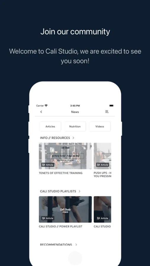Cali Studio app lets you navigate available classes, view previous & future sessions, track consistency and set achievable goals all in one place.