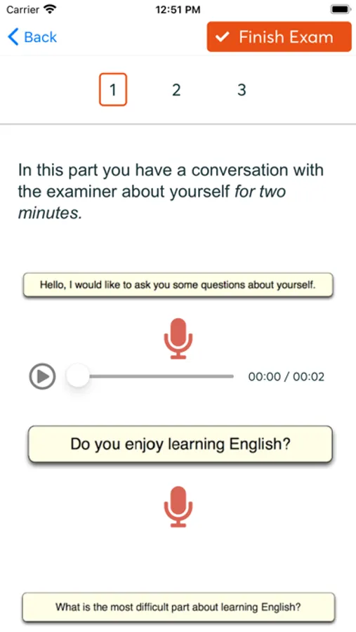 Through this APP, students will be able to complete all Speaking activities for all levels: