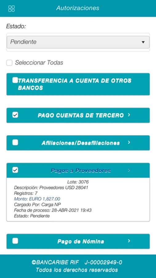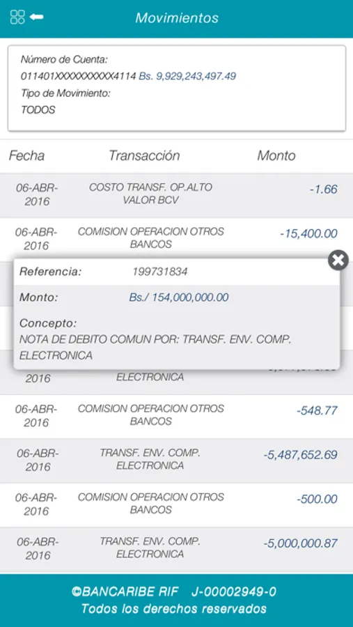 o Transferencias a cuentas propias y a terceros en Bancaribe.