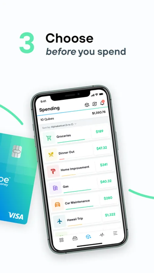 Qube Money automatically keeps track of precisely what, when, and where you spent—no more trying to remember what goes where—it’s already organized in your qubes.