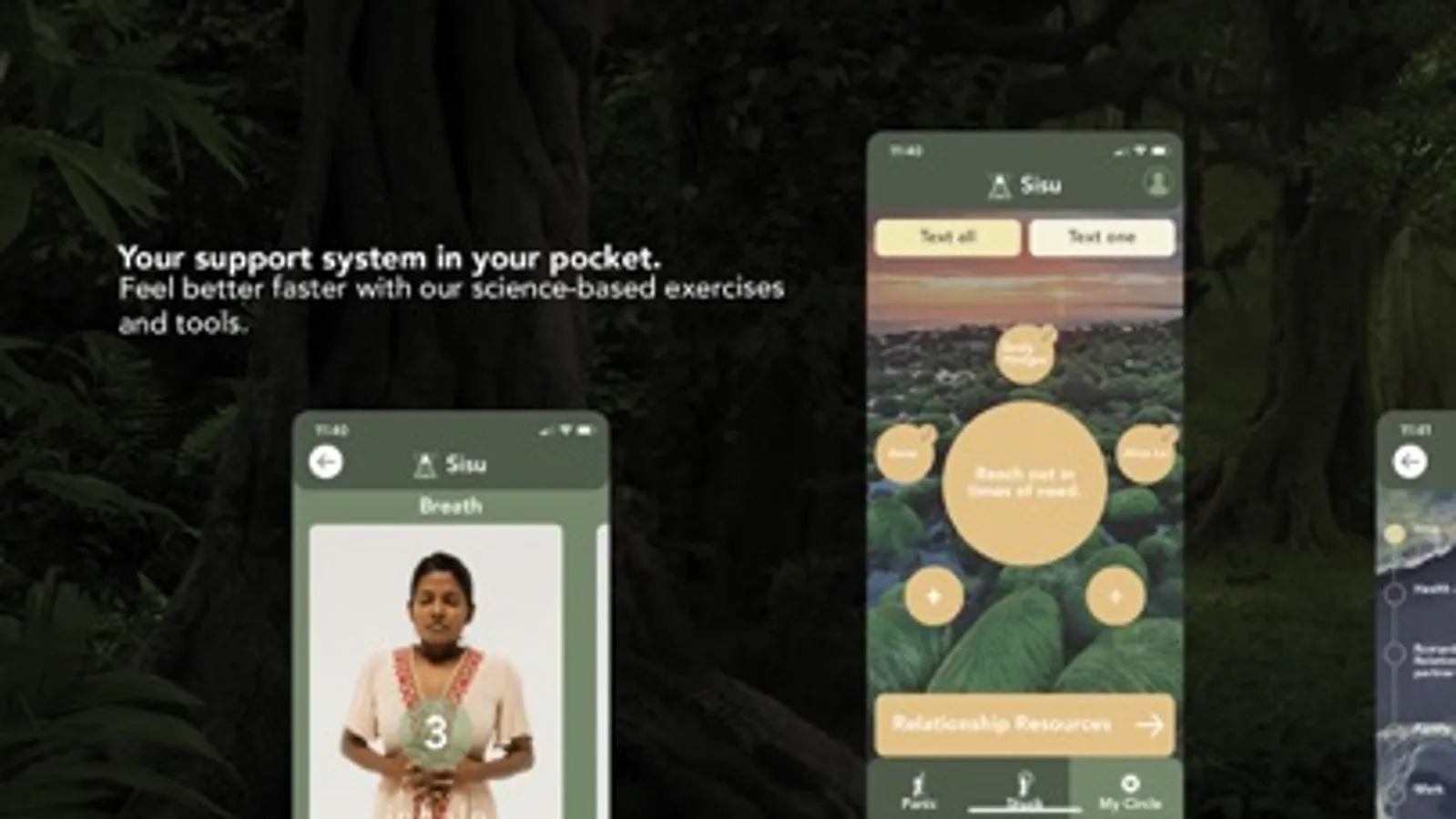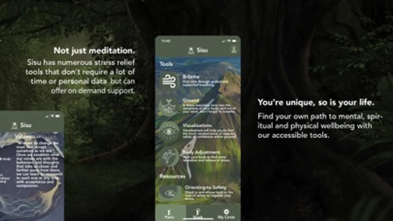 Sisu is not just meditation, not just CBT. We boast tools that rely on the most recent psychological evidence for finding calm and establishing mental health, which contains a little bit of everything, including somatic (or body-focused) practices.