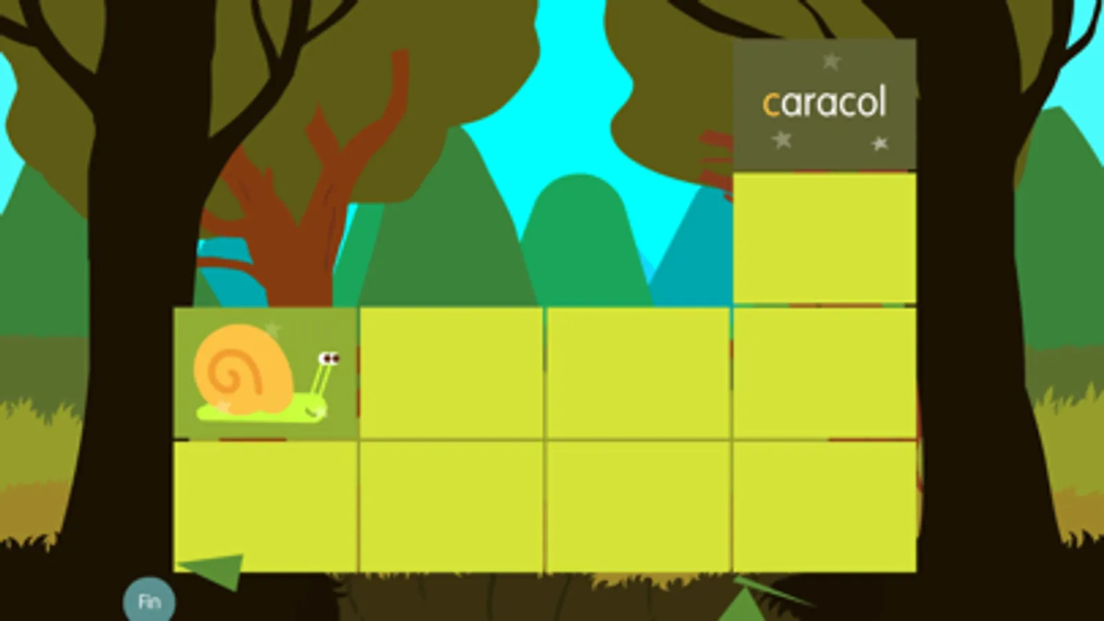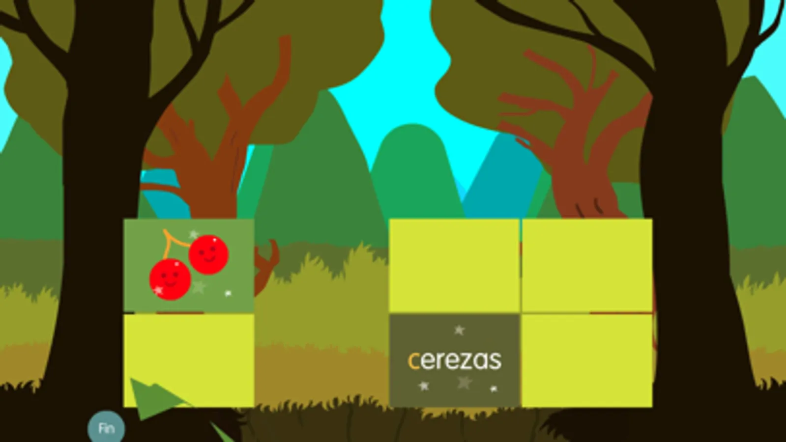 Funciona como el clásico juego de memoria pero en este caso deberemos hacer coincidir las palabras escritas con sus dibujos correspondientes. Con la opción de dos jugadores cuando uno de ellos acierta suma un punto y repite turno. Al finalizar gana el jugador con más puntos.
