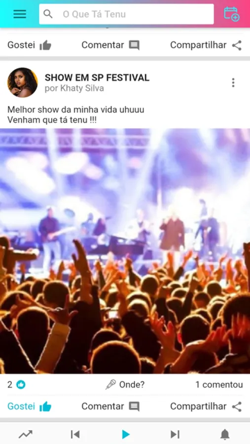 Com o app O Que Tá Tenu você pode curtir, comentar e compartilhar seus eventos preferidos, também criar seu próprio evento gratuitamente!