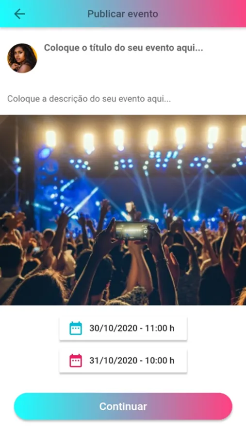 Baixe o app e crie seus próprios eventos de graça e comece a divulgá-los na hora.