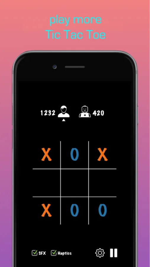 Put away pencil and paper. Play Tic Tac Toe game against a friend on the device or against the Bot.