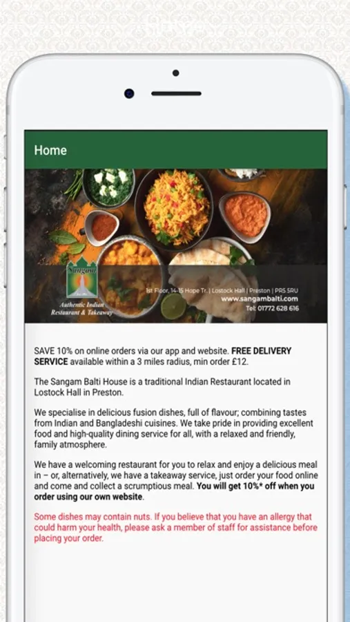 SAVE 10% on online orders via our app and website. FREE DELIVERY SERVICE available within a 3 miles radius, min order £12.