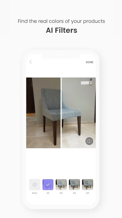 Your customer ask for a refund because the color is different with actual product color? With 4 kinds of AI Filter, you can edit color to be similar to the actual color, without complicated color adjust process, only with one touch!