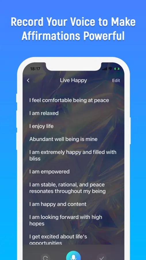 Scientific research has proven the power of positive thinking. Using this app, positive thinking is even stronger when it is verbalized by our voices. As Louise Hay said, trust life to hear and respond to your positive words. Say these affirmations every day and your whole world will change for the better.