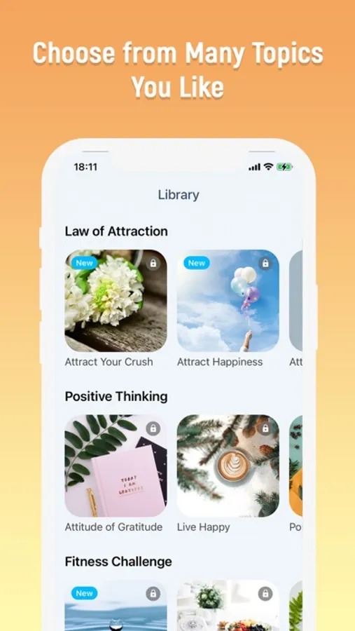A wide range of affirmation topics are included, such as law of attraction, positive thinking, parents & kids and more.