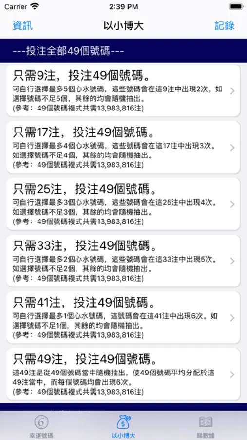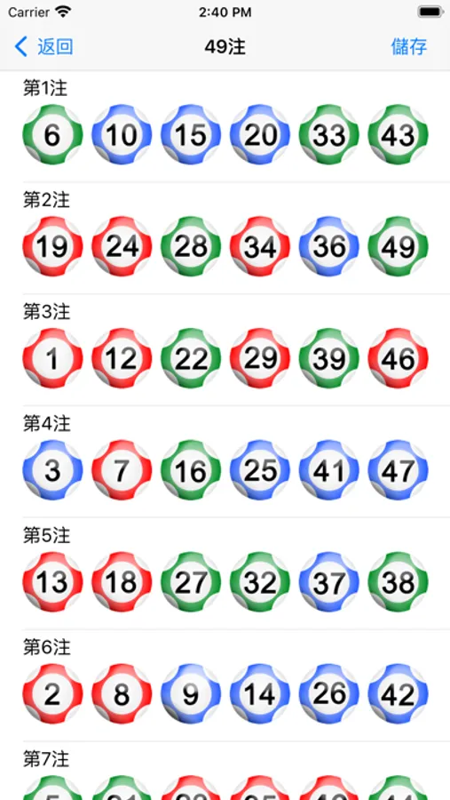 7. 儲存每組幸運號碼 , 隨時查閱