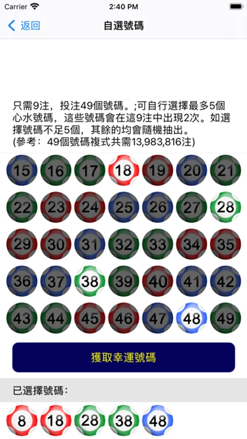 1. 提供每次6個幸運號碼