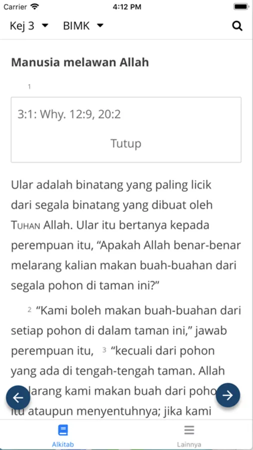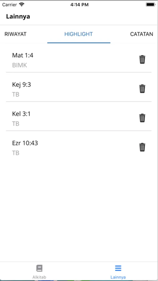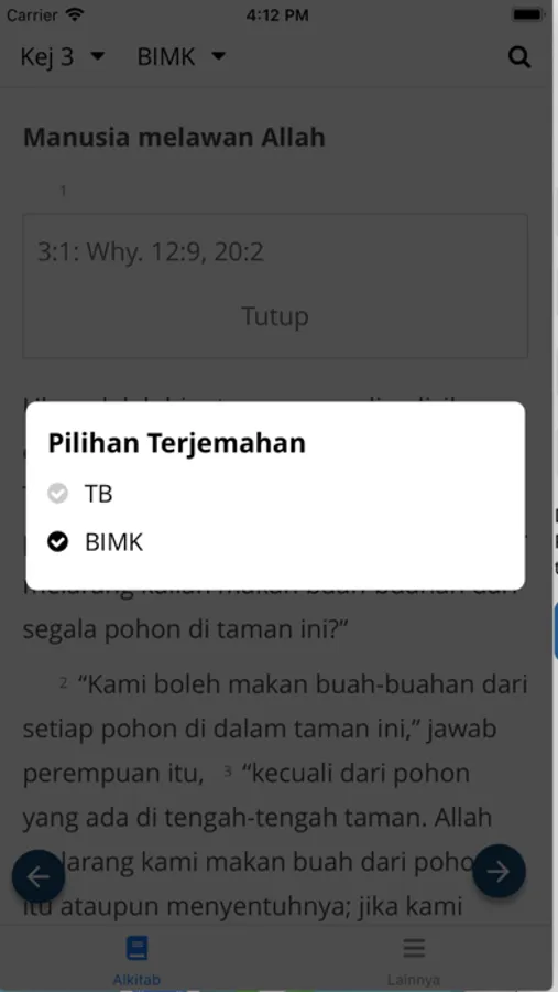 Aplikasi Alkitab Lembaga Alkitab Indonesia berisi beebrapa terjemahan dalam bahasa Indonesia:
