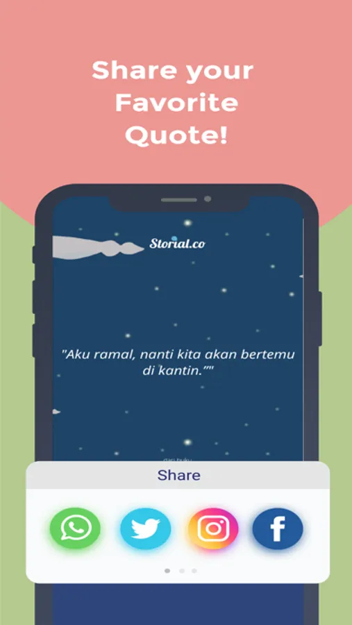 Karena di Storial kamu sebagai pembaca dimanjakan banget dengan bisa langsung berinteraksi sama penulis favorit kamu! Juga ada fitur Quotes di mana kamu bisa pilih kalimat yang kamu suka di cerita tersebut untuk kamu bagikan ke social media.