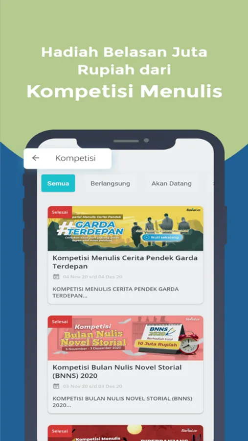 Di Storial kamu bisa mengikuti kompetisi menulis yang berhadiah jutaan rupiah!