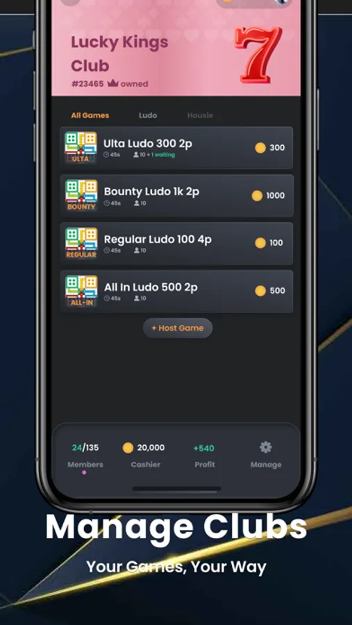 - Start your own club and choose your own games. Set stakes, timeouts and many other custom settings.