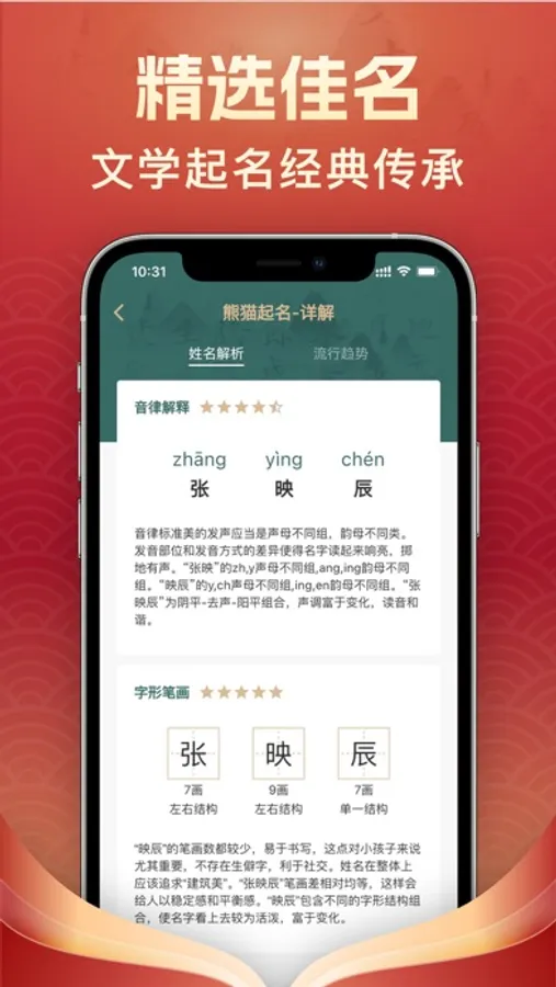 熊猫起名宝宝取名是一款宝宝起名软件,我们提倡诗词起名和寓意起名,根据科学方式给宝宝起一个有寓意的名字。