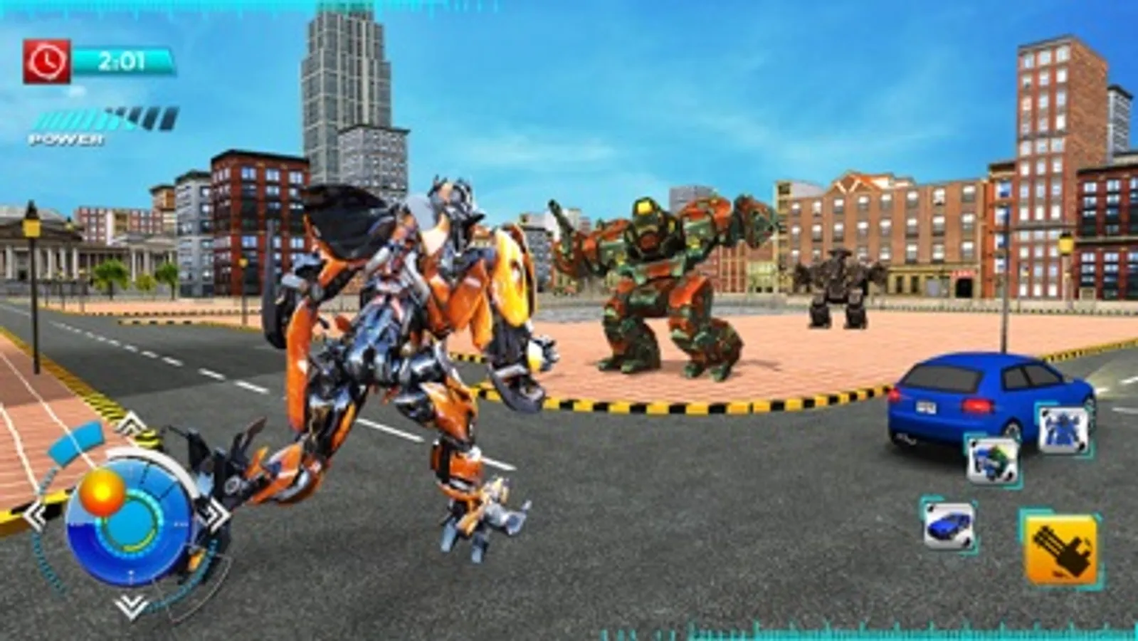 Its time to become a new super robot player and your responsibility is to survive against battle with mafia robots and secured helpless people of city. Mostly peoples were killed and injured by furious robots in the ultimate city battle. In this robot transformation game Robot lion immediately needs the help of super robot powers of a grand robot to do fight with other mech robots. Now Prepare for the real robot fighting in transforming robot war games that will bring for you the grand battle of robots in real robot war arena of city. Being a trained player you should Survive against battle robots roaming in city & causing chaos in real world environment. This game having interesting story, for the first time the Lion attack with shooting, punching, kick & stomp effect & mesmerizing sounds in transforming simulator of lion robot car transforming will make this robot lion games realistic. Just Control cars and robots transformation & shooting in new future robot games or fun shooting rampage of robot transforming. If you want to play a free transformation robot game or animal robot games, just take a step and download our ultimate robot shooting.Its time to become a new super robot player and your responsibility is to survive against battle with mafia robots and secured helpless people of city. Mostly peoples were killed and injured by furious robots in the ultimate city battle. In this robot transformation game Robot lion immediately needs the help of super robot powers of a grand robot to do fight with other mech robots. Now Prepare for the real robot fighting in transforming robot war games that will bring for you the grand battle of robots in real robot war arena of city. Being a trained player you should Survive against battle robots roaming in city & causing chaos in real world environment. This game having interesting story, for the first time the Lion attack with shooting, punching, kick & stomp effect & mesmerizing sounds in transforming simulator of lion robot car transforming will make this robot lion games realistic. Just Control cars and robots transformation & shooting in new future robot games or fun shooting rampage of robot transforming. If you want to play a free transformation robot game or animal robot games, just take a step and download our ultimate robot shooting.