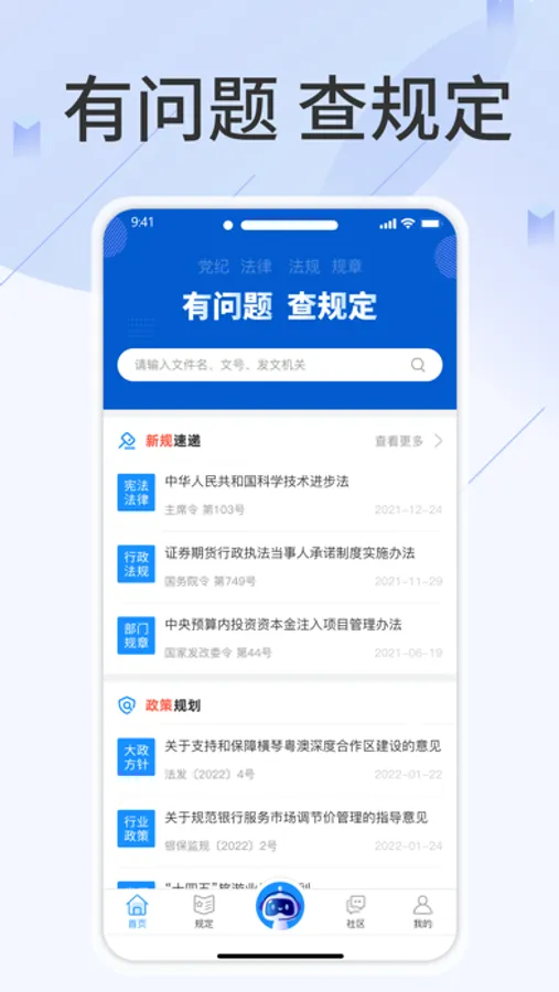 查规定是一款专门用于查询与学习党纪、法律、行政法规、部门规章和业务规则等相关规定的实用工具,具有精准搜索、语音阅读、文内查找、划线批注等多种功能。