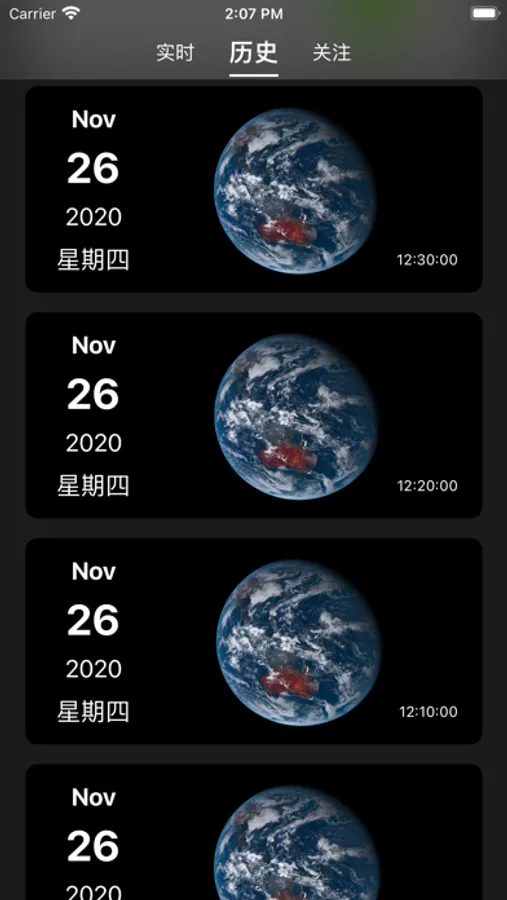 一款实时的卫星地球图像App,也可以回溯历史卫星图像。