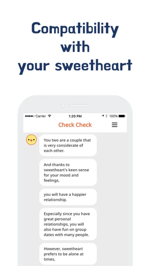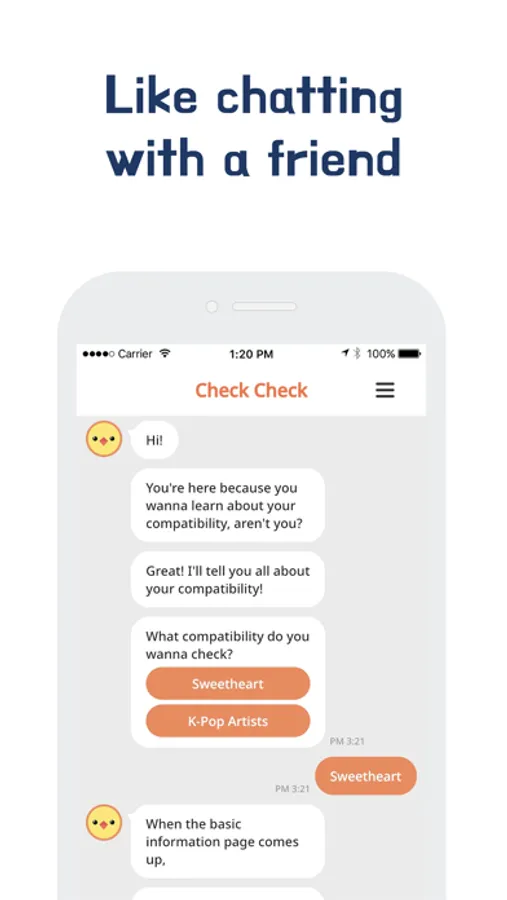 Checking your compatibility with Check Check feels like you're chatting with a friend.