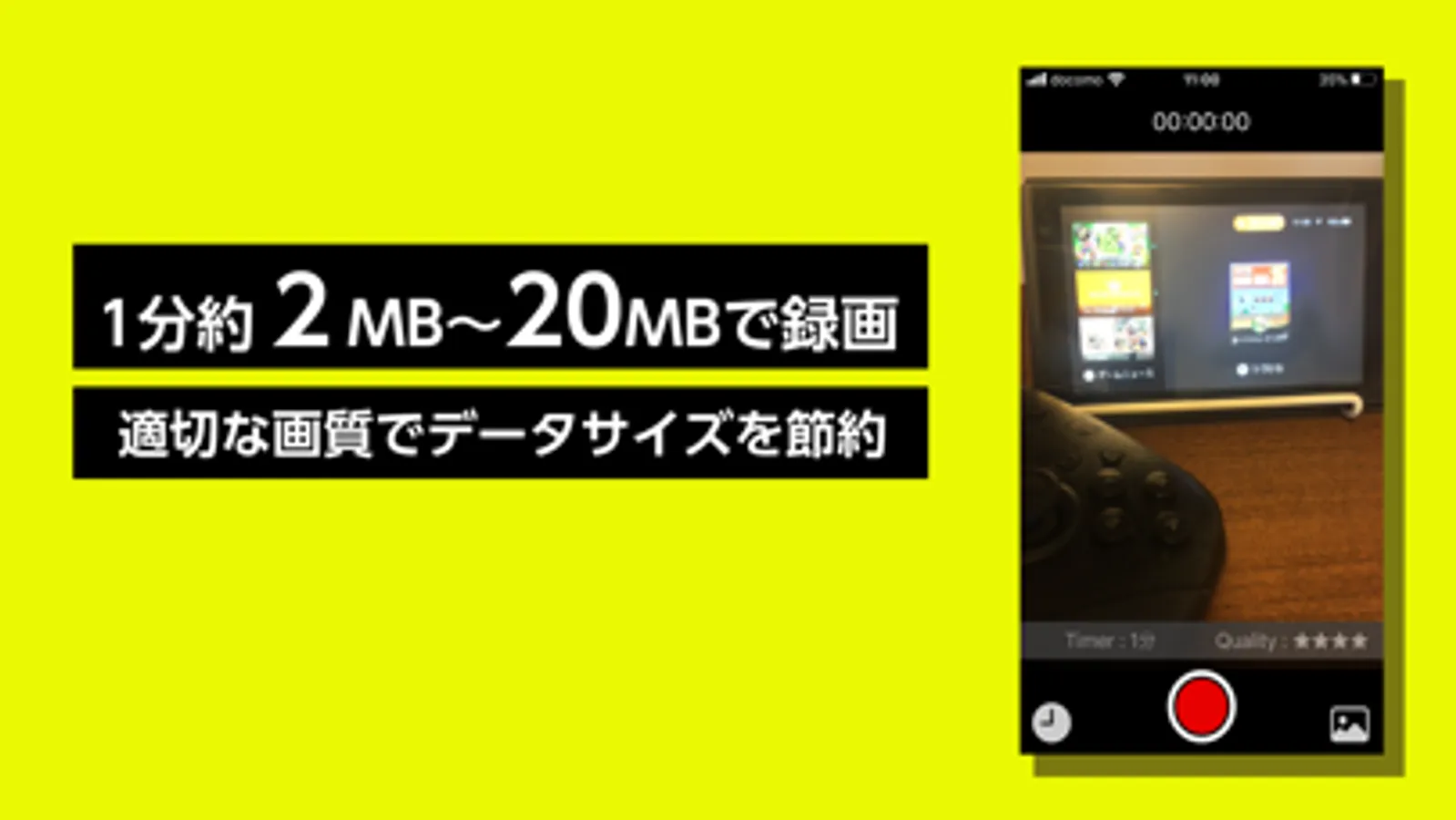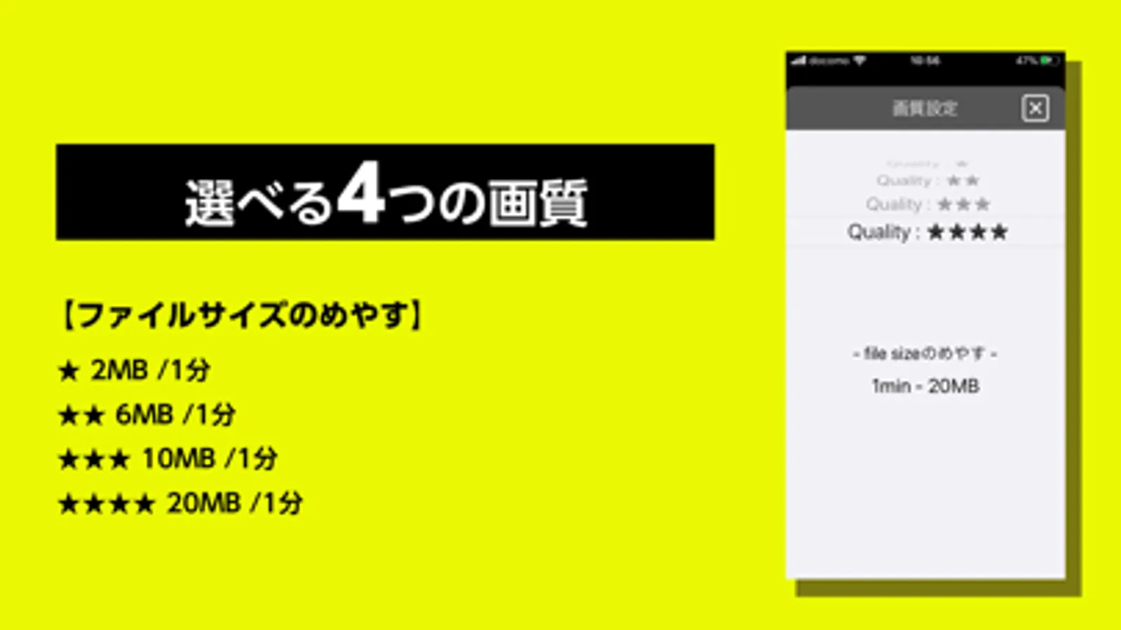 低画質サイズでビデオ録画することでストレージを節約できます。