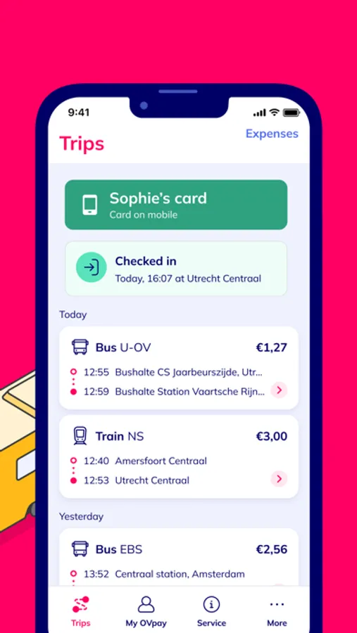 OVpay is THE new way of checking in and out in public transport. This is the app that goes with it, offering you an overview of all your trips. Make an expense overview in a swift. Want to see live whether you checked in or out? Check the app. Forgotten to check in or out? Adjust it in the app. And quickly recognize your added pass in the app? Give it a color and text of your own. You never have to search again. Of course, we'll keep expanding the app with useful functions.