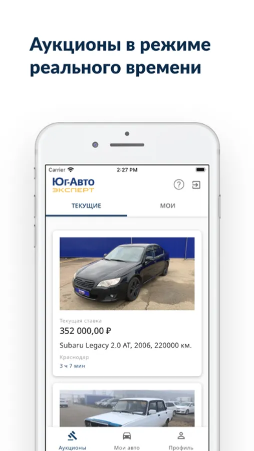 Приложение по продаже на аукционе автомобилей от компании Юг-Авто Эксперт