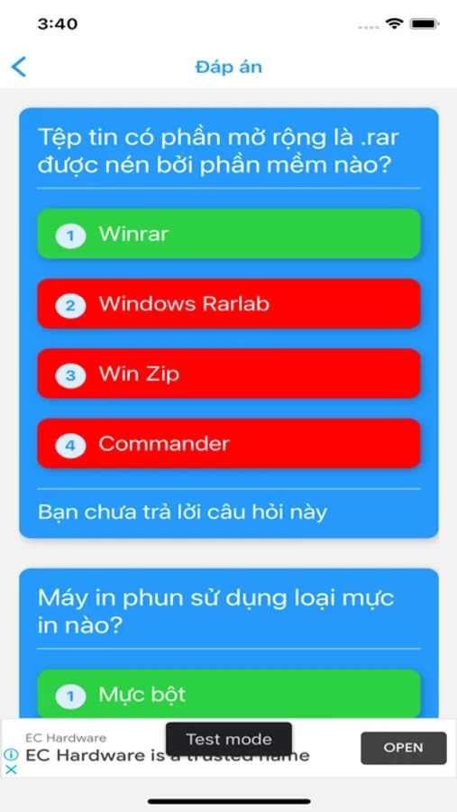 2. Thi thử các câu hỏi của từng module, hoặc các câu hỏi ngẫu nhiên.