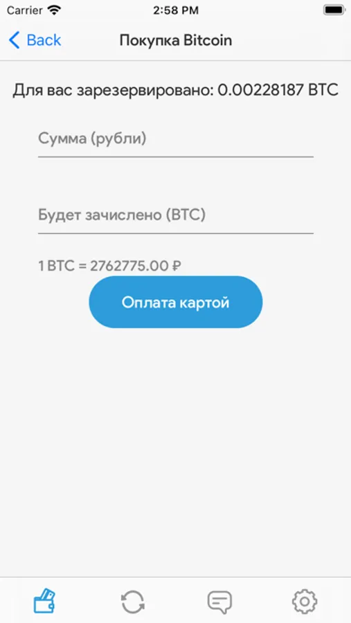 Мгновенный bitcoin картами VISA, MasterCard, МИР, maestro. Получи свой Bitcoin сразу без ожиданий, отправляй куда хочешь. Можешь делать несколько транзакции, создавать и контролировать их самостоятельно. Хранить ВТС можешь тут же. Обмен ₽/ВТС 24/7/365