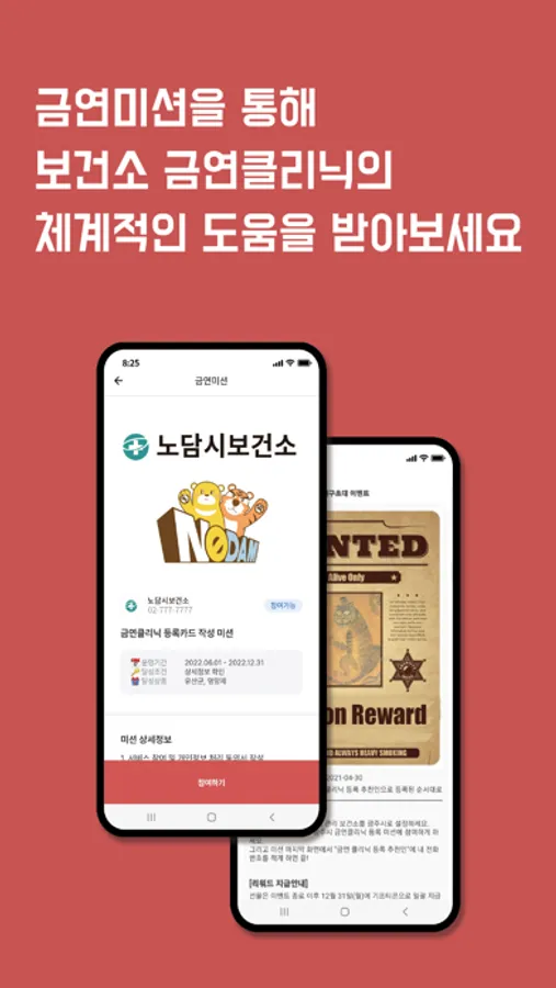 ※주의: 금연미션은 금연ON과 제휴된 지역의 보건소에서만 제공됩니다.