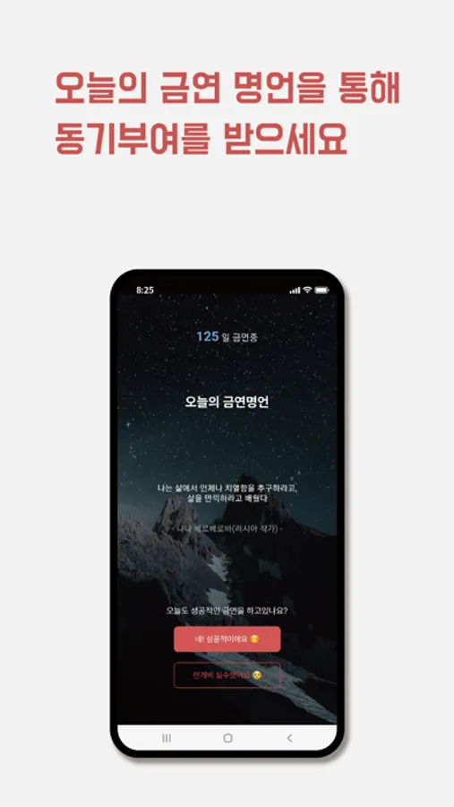 6개월 짜리 장기 목표가 아니라, 눈 앞에 있는 금연 미션을 하나하나 달성하다보면 나도 모르는 사이에 금연성공!