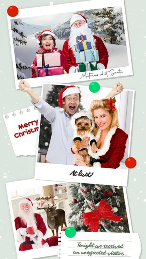 Take a family selfie with him, this app is surely going to bring fun to your holiday season. Surprise your family and friends with a profile picture with Santa Claus. Discover our sticker collection with real pictures of Santa and Christmas decoration.