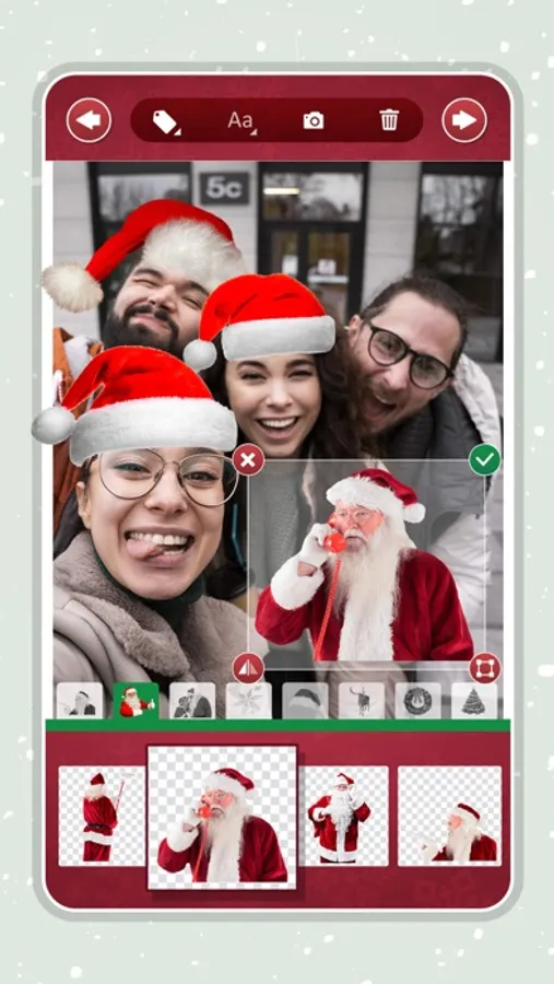 Add Christmas stickers to your photos and make people laugh. Use our text editor to add messages, text or quotes to your images. Be the one who has the best selfie with Santa this year. With all the funny photos you are about to take with our app, you can celebrate New Year 2023 and Christmas 2022 with joy and happiness!