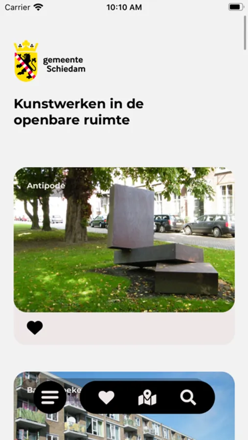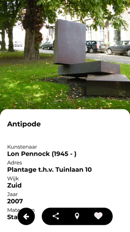 Om bewoners en bezoekers optimaal te laten genieten van de mooie collectie is toen het idee opgevat om een aantrekkelijke app te maken. Die app kan je autonoom gebruiken, maar je wordt er ook naar verwezen als je 'toevallig' op een werk stuit. Dan geeft de app aan dat er nog meer werken in de directe omgeving zijn te bezoeken. Daarmee ontstaat dan een soort beeldenroute door de noordrand van Schiedam.