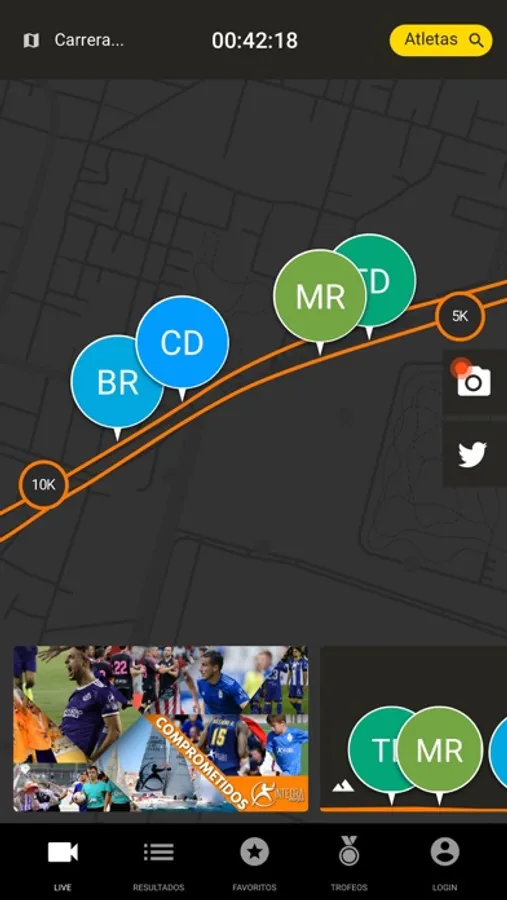 Tuitea directamente desde la app tu experiencia en el evento y sube tus fotos a la galería colaborativa de la prueba. Sigue a tus amigos o atletas favoritos y recibe notificaciones cada vez que pasen por un nuevo punto.