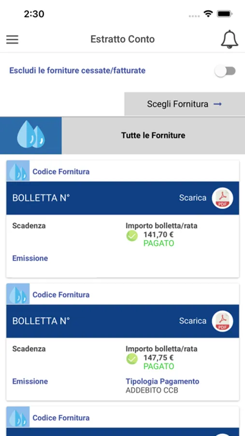 · visualizzare la tua situazione contabile e scaricare le fatture in formato pdf (Estratto conto)