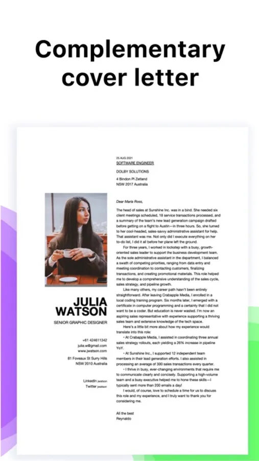 Look no further, you have just found the app that will help you write a resume & cover letter that will get noticed by your employer.